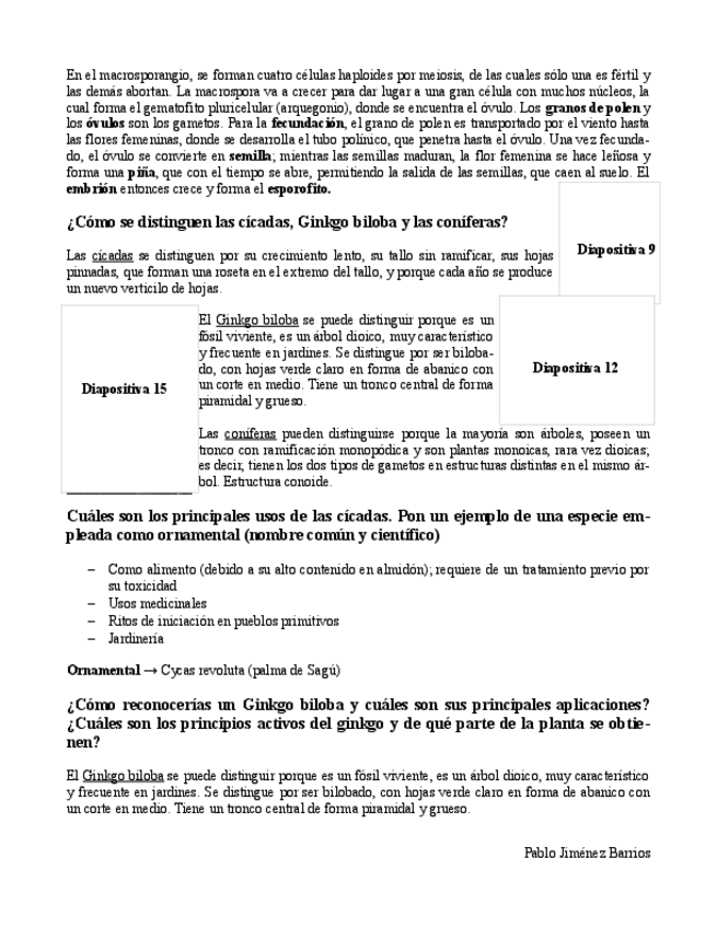 9,41 en el examen de vegetal. El ejercicio sobre los grupos de especies estudiados, en vez de helechos es briofitos (parafiletico). En ese ej, Gimnospermas no pregunta