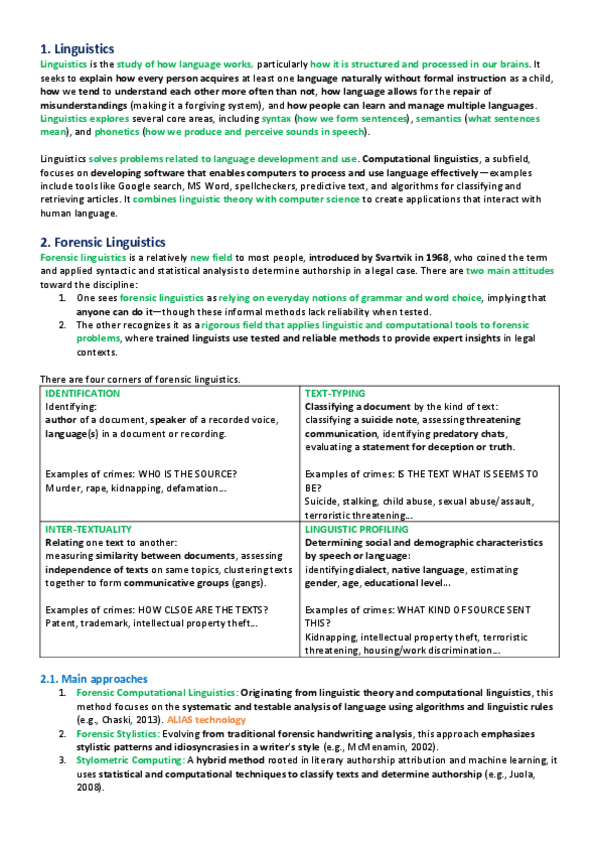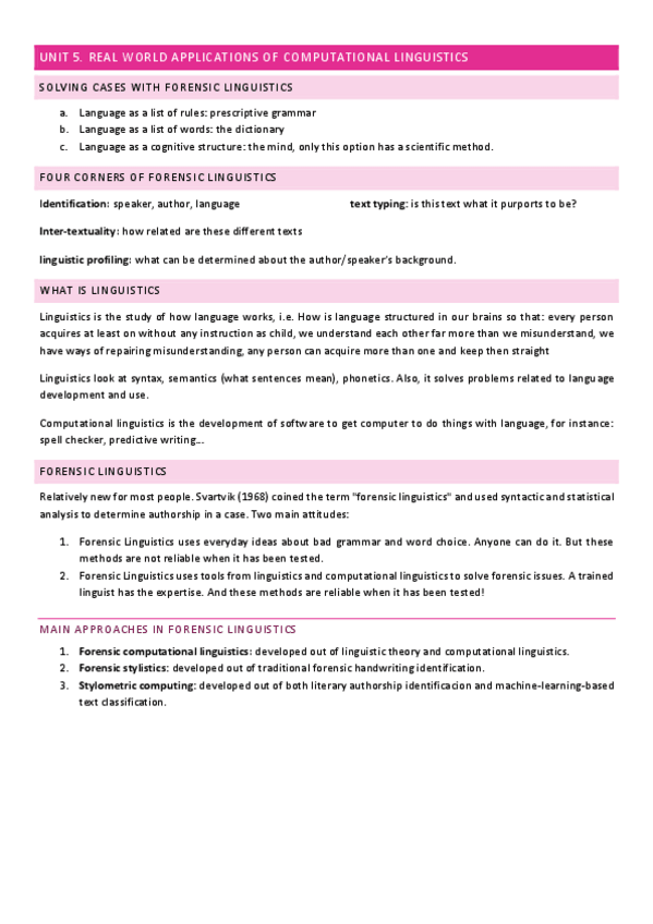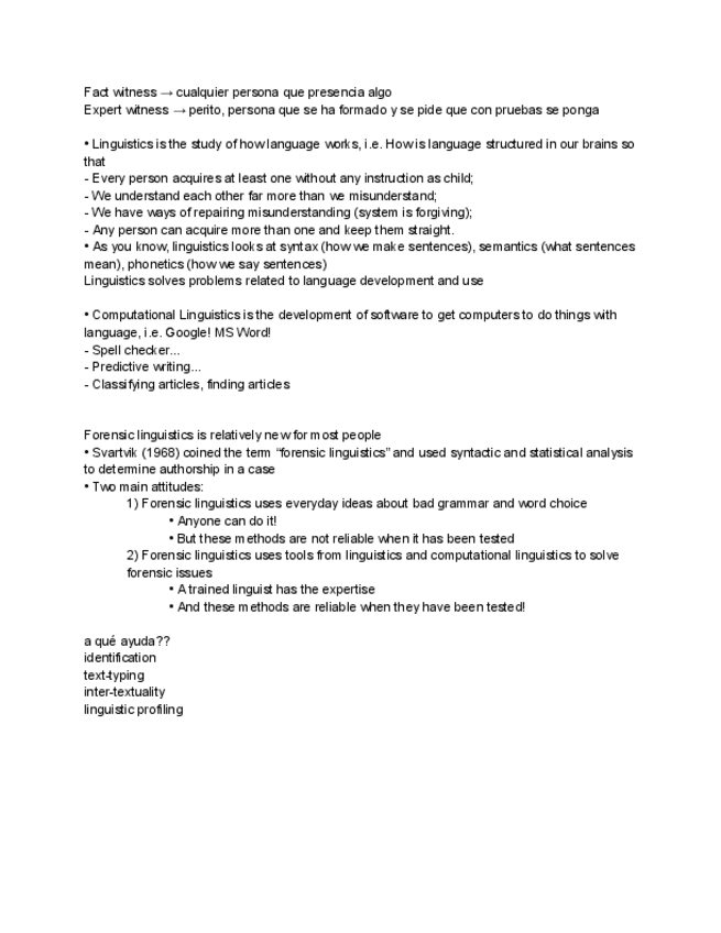He publicado nuevos apuntes de 2º Recursos, Herramientas y Nuevas Tecnologías para Los Estudios Ingleses: Unit-5Forensic-linguistics-is-relatively-new-for-most-people--Svartvik-1968-coined-the-term-forensic-linguistics-and-used-syntactic-and-statistical-analysis-to-determine-authorship-in-a-case--Two-main-at.pdf
