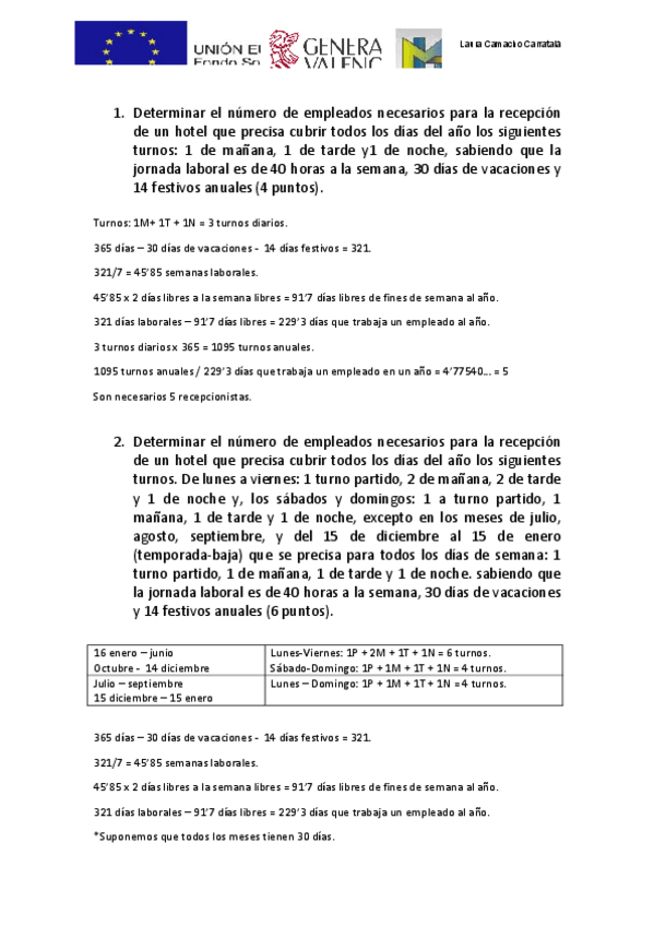 He publicado nuevos ejercicios de Recursos humanos en el alojamiento: Calculo-de-plantilla-en-regimen-de-turnos.pdf