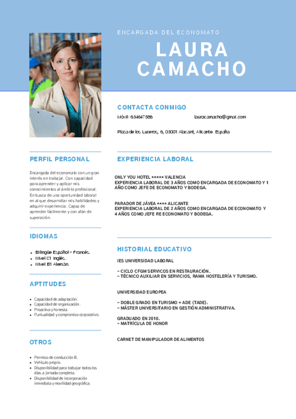 He publicado nuevos ejercicios de Recursos humanos en el alojamiento: Curriculum-ejemplo-de-encargada-del-economato.pdf