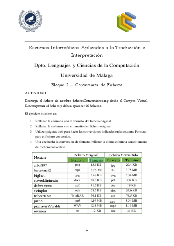 He publicado nuevos ejercicios de 1º Recursos informaticos aplicados a la Traduccion e Interpretacion: Bloque1-Ejercicios.pdf