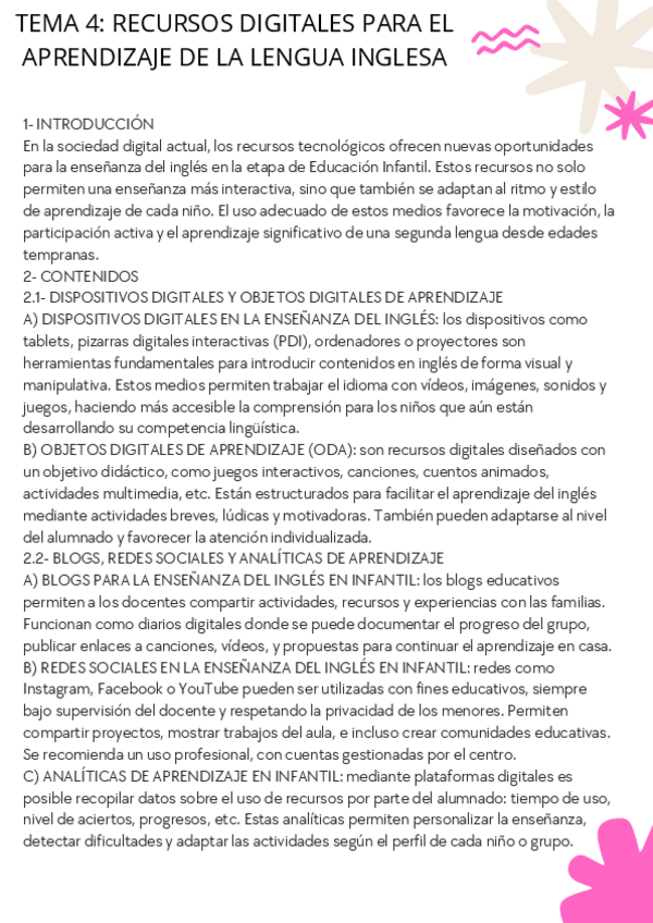 He publicado nuevos apuntes de 3º Recursos para la Enseñanza del Inglés en Educación Infantil: TEMA-4.-RECURSOS-DIGITALES-PARA-EL-APRENDIZAJE-DE-LA-LENGUA-INGLESA.pdf