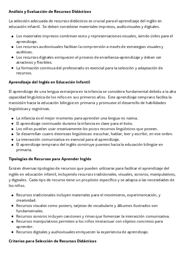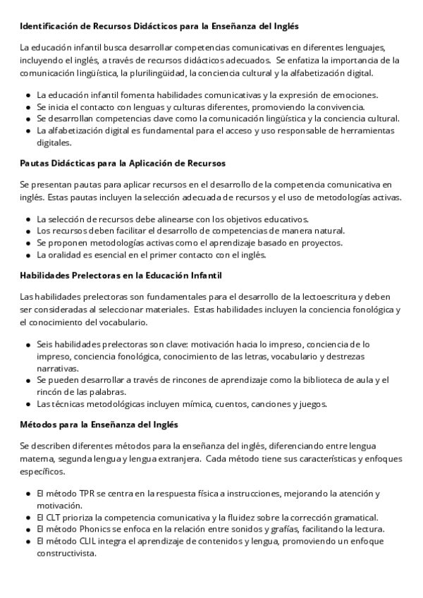 He publicado nuevos apuntes de 3º Recursos para la Enseñanza del Inglés en Educación Infantil: RESUMEN-INGLES.pdf