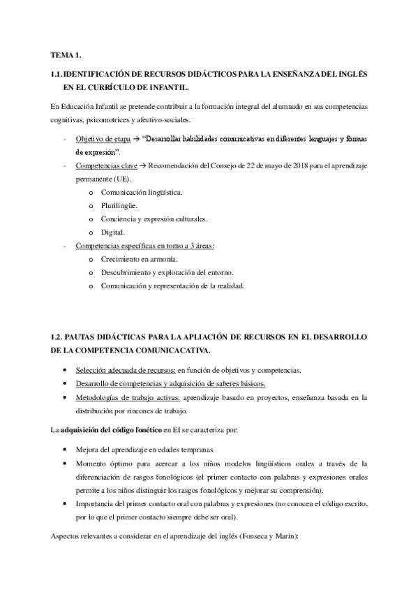 He publicado nuevos apuntes de 3º Recursos para la Enseñanza del Inglés en Educación Infantil: TEMA-1.-RECURSOS-DIDACTICOS-EN-LENGUA-INGLESA-Y-SU-VINCULACION-CON-EL-CURRICULO.pdf