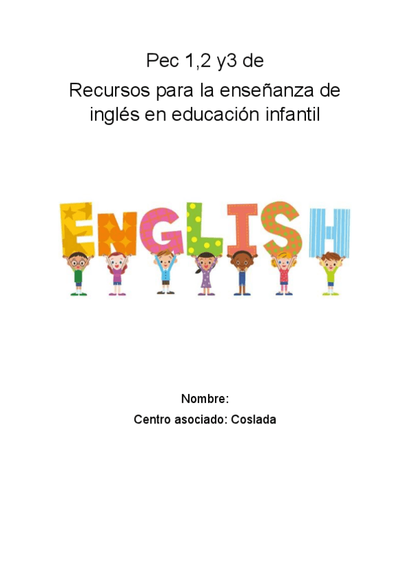 He publicado nuevos pec de 3º Recursos para la Enseñanza del Inglés en Educación Infantil: PEC-Recursos-para-la-Ensenanza-del-Ingles-en-Educacion-Infantil.pdf