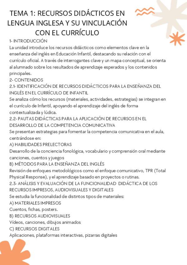 He publicado nuevos apuntes de 3º Recursos para la Enseñanza del Inglés en Educación Infantil: TEMA-1.-RECURSOS-DIDACTICOS-EN-LENGUA-INGLESA-Y-SU-VINCULACION-CON-EL-CURRICULO.pdf