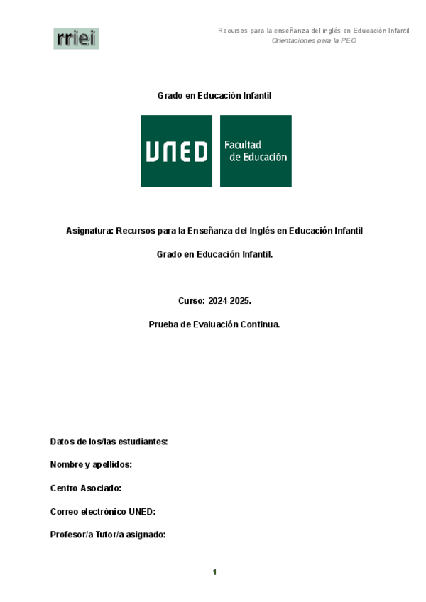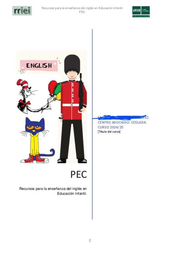 He publicado nuevos pec de 3º Recursos para la Enseñanza del Inglés en Educación Infantil: PECRRiEI.pdf