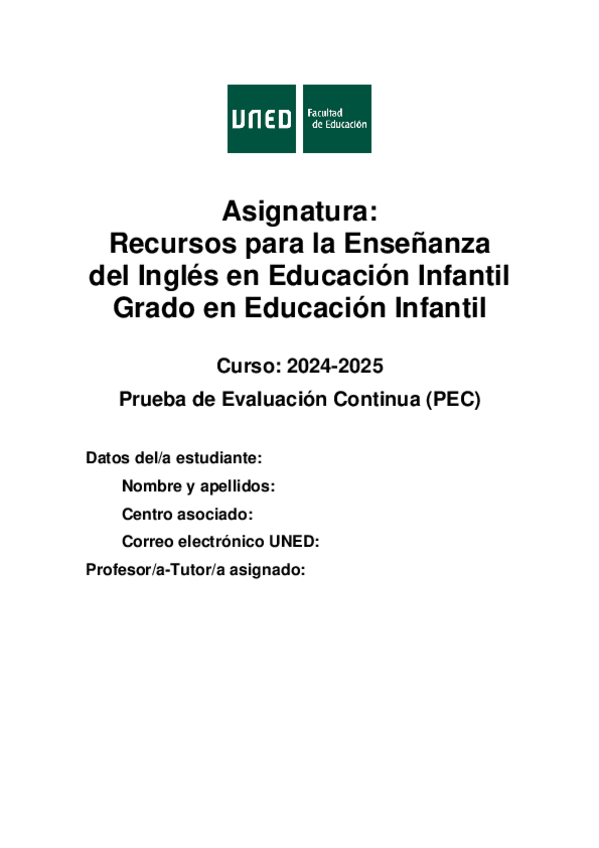 He publicado nuevos pec de 3º Recursos para la Enseñanza del Inglés en Educación Infantil: PEC.pdf