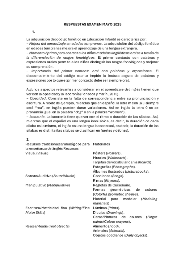 He publicado nuevos examenes de 3º Recursos para la Enseñanza del Inglés en Educación Infantil: WMayo2025.pdf