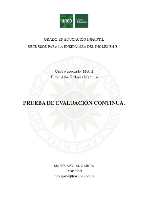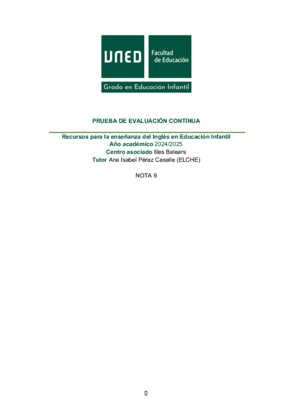 He publicado nuevos pec de 3º Recursos para la Enseñanza del Inglés en Educación Infantil: PEC-INGLES-NOTA-9.pdf