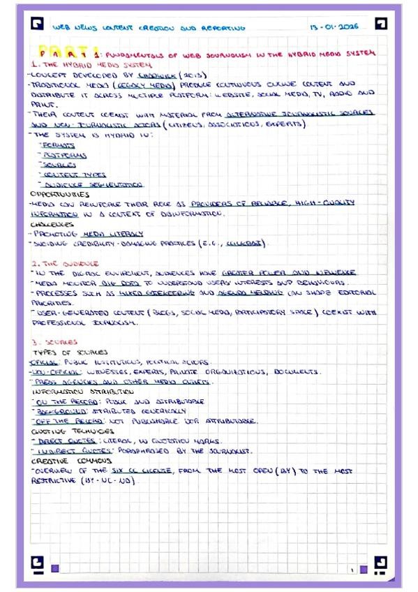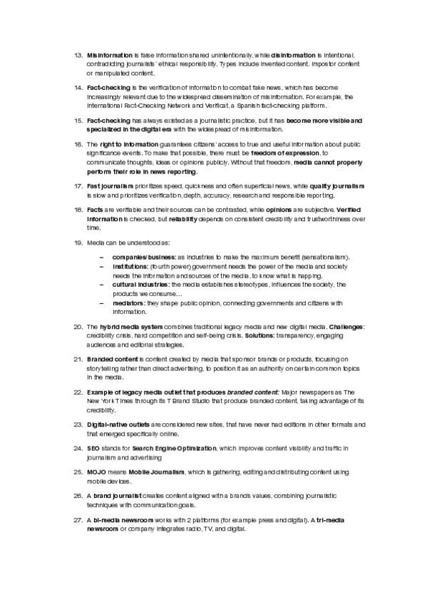 Apuntes examen final Web News Content Creation and Reporting. What should I´ve learned+reading for the exam