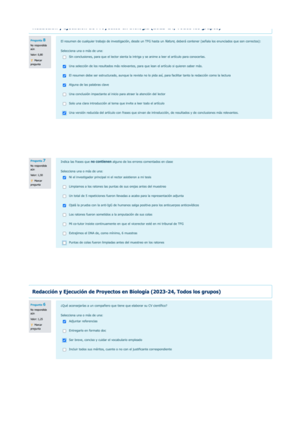 He publicado nuevos examenes de 4º Redacción y Ejecución de Proyectos en Biología: PREGUNTAS-TIPO-TEST-BLOQUE-II.pdf