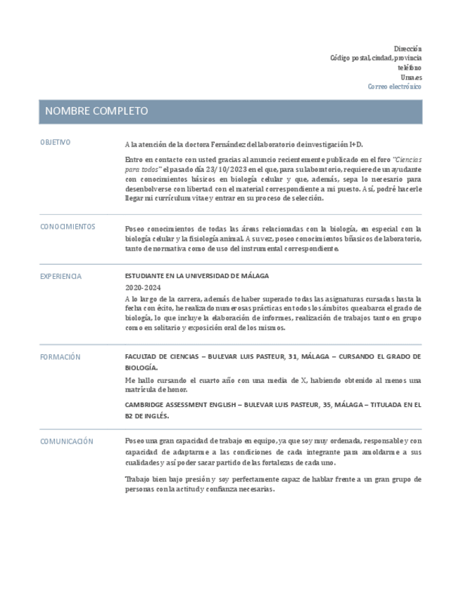 He publicado nuevos ejercicios de 4º Redacción y Ejecución de Proyectos en Biología: Tarea-3-carta-de-presentacion-TFG.pdf