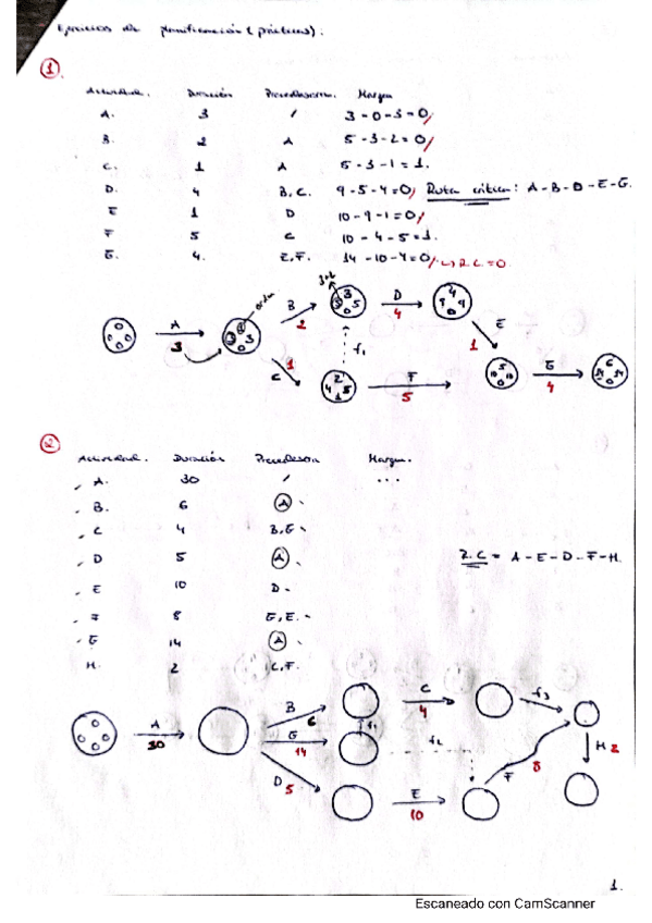 Ejercicios resueltos de la parte práctica de Redacción y Ejecución de proyecto correspondiente al MÉTODO PERT