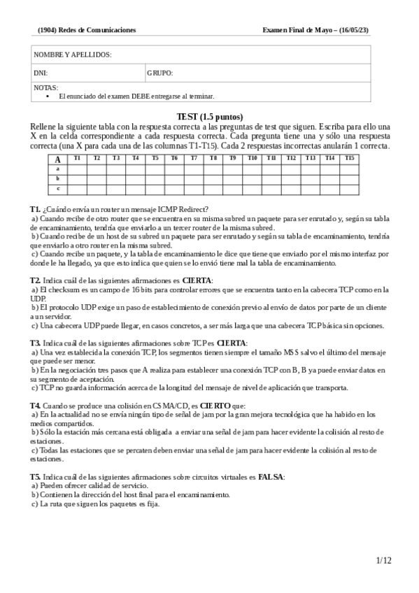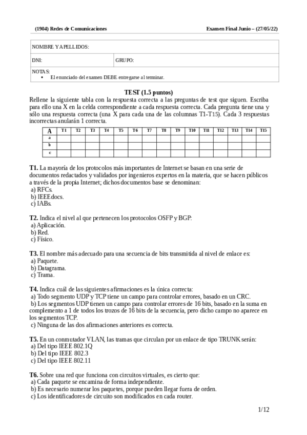 He publicado nuevos examenes de 2º Redes de Comunicaciones: FinalMayo2024resuelto.pdf