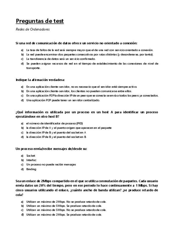 He publicado nuevos test de 2º Redes de Ordenadores: test2oparcial2021.pdf