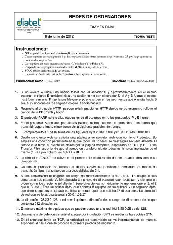 He publicado nuevos examenes de 3º Redes de Ordenadores: APROBADO SEGURO - Exámenes Resueltos