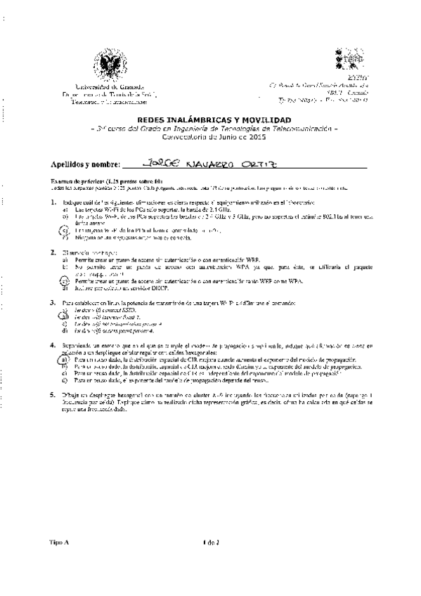 He publicado nuevos apuntes de 3º Redes Inalámbricas y Movilidad (Especialidad Telemática): Exámenes resueltos