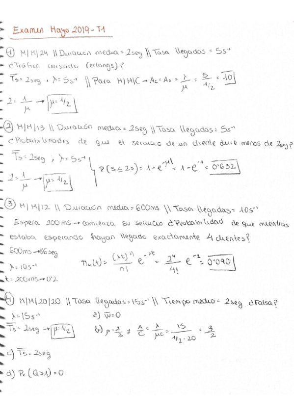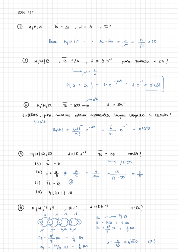 He publicado nuevos ejercicios de 2º Redes Telemáticas: ejercicios M/M/1 y M/M/C