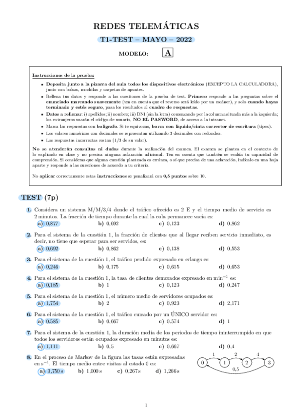 He publicado nuevos ejercicios de 2º Redes Telemáticas: Ejercicios-ExplicadosMarkov.pdf