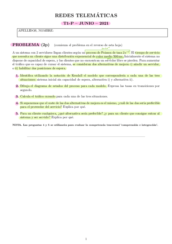 He publicado nuevos ejercicios de 2º Redes Telemáticas: poisson.pdf