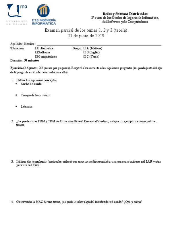 He publicado nuevos examenes de 2º Redes y Sistemas Distribuidos: Examen-Parcial-Completo-T123-Junio-2019-Resuelto.pdf