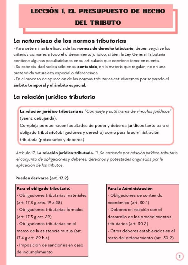Lección 1. El presupuesto de hecho del tributo Regimen Fiscal