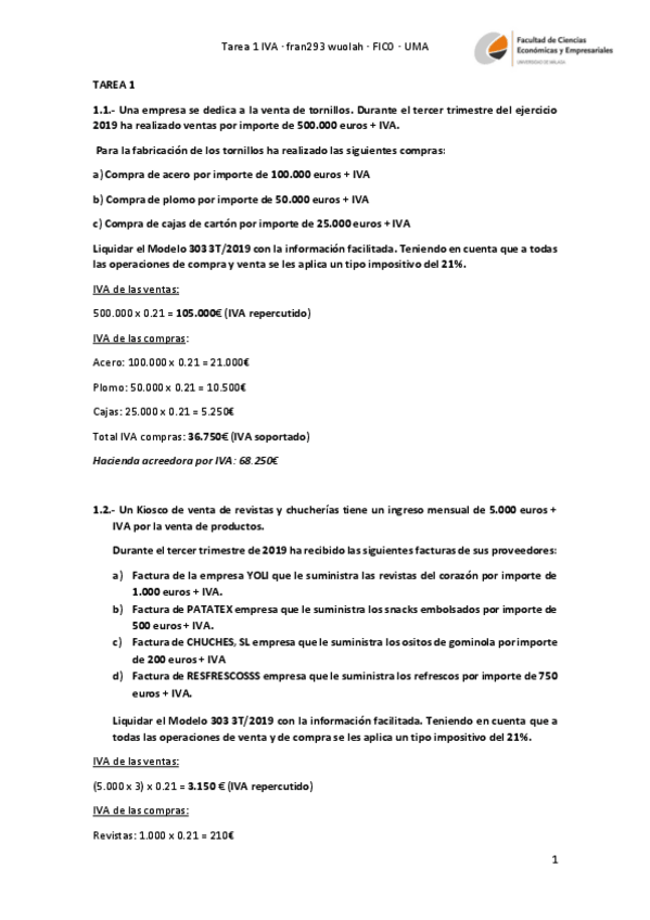 He publicado nuevos practicas de 4º Régimen Fiscal de Empresas Financieras y Aseguradoras: TAREA-1-IVA-wuolah.pdf