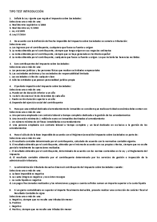 Test Impuesto de Sociedades