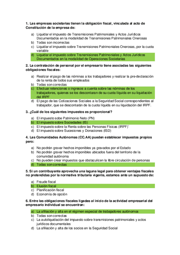 Test primera parte del examen final RFE, la segunda parte (IVA e IS) está publicada en mi perfil