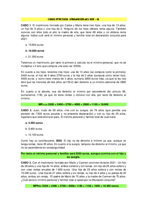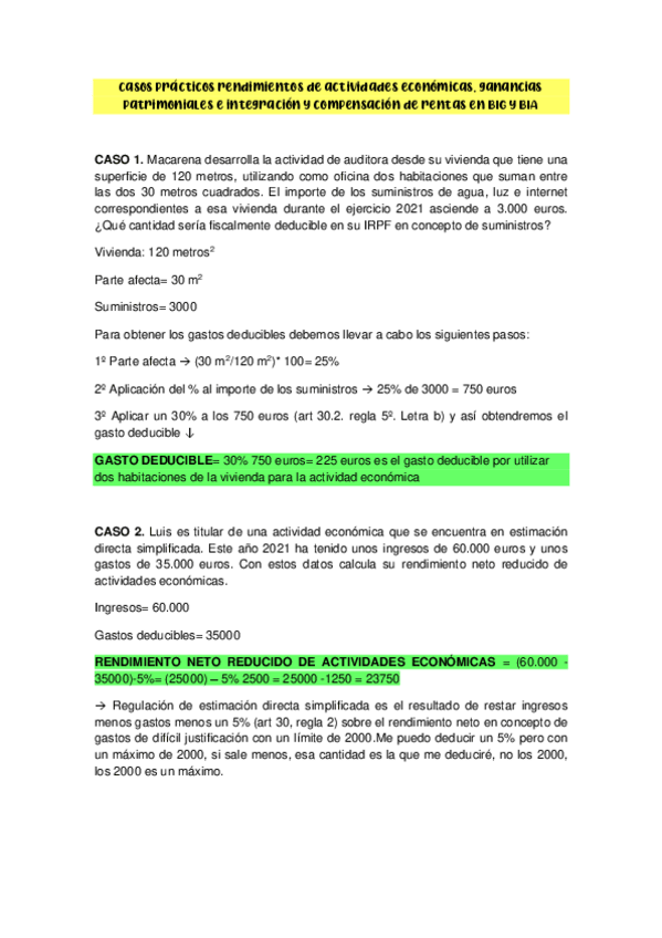 Casos prácticos de todos los temas corregidos de clase y con explicaciones