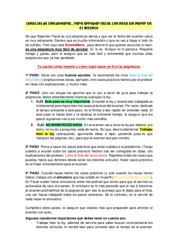 Si estás perdido con Fiscal este documento es para ti. Te ayudara a saber como plantear el estudio de cara al examen. Animo.