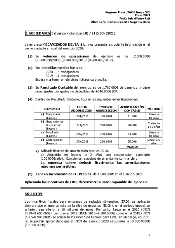 He publicado nuevos ejercicios de 5º Régimen Fiscal: Esfuerzos Individuales IS