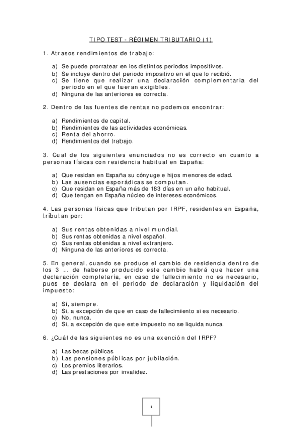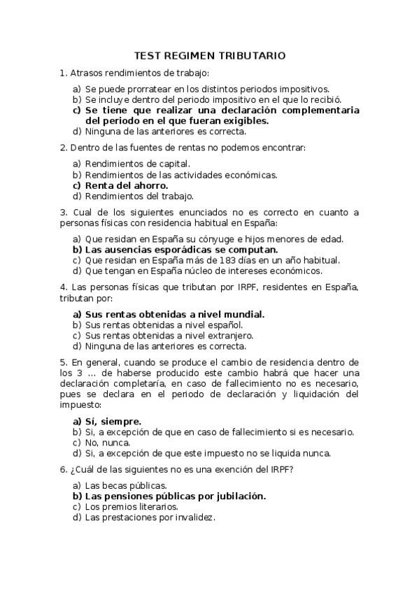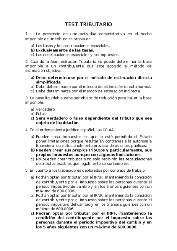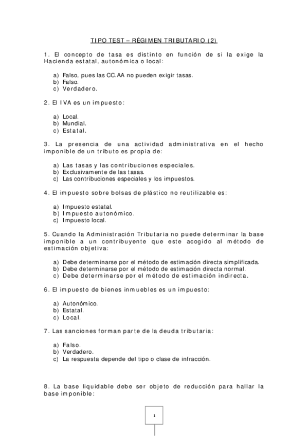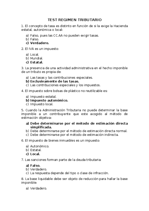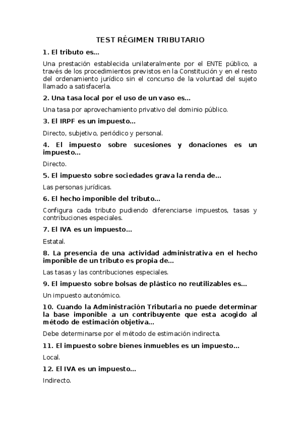 TEST régimen tributario