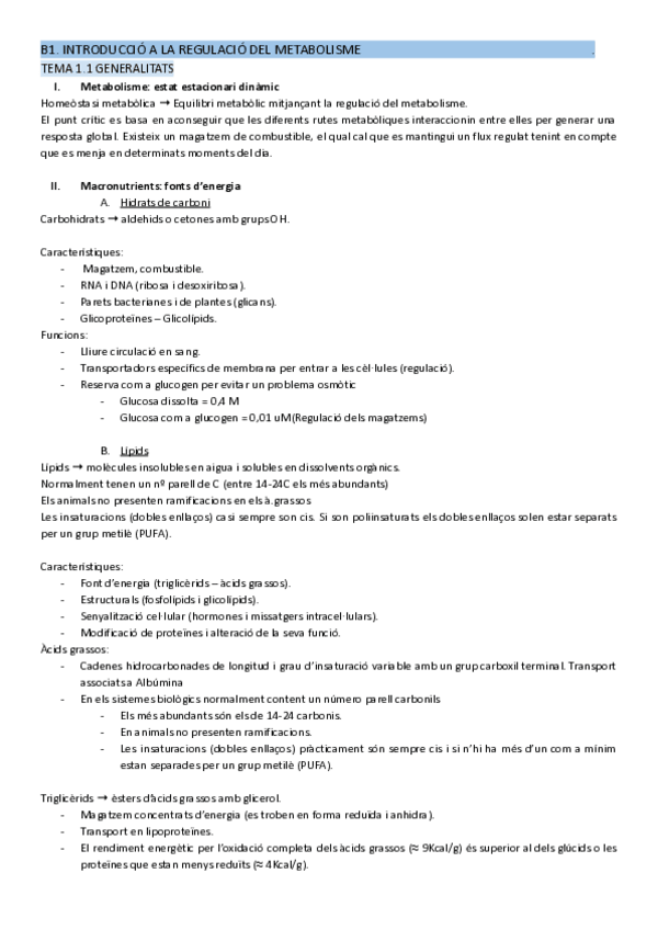BLOC 1: Introducció a la regulació del metabolisme