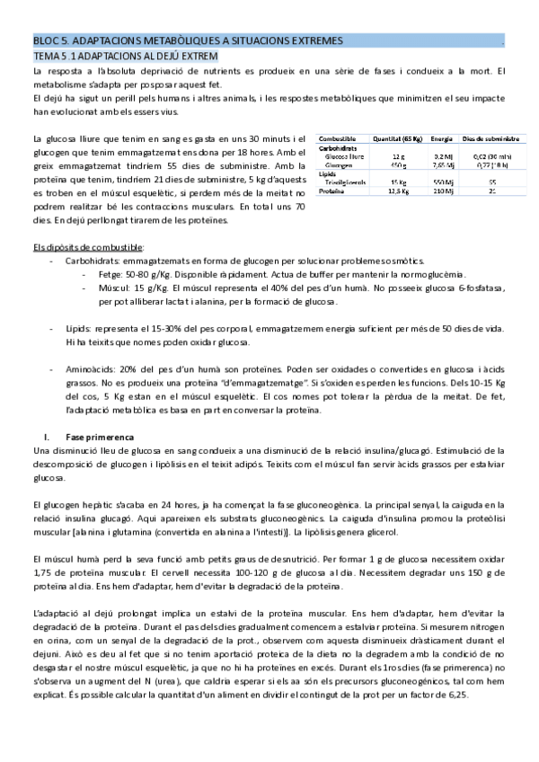 BLOC 5: Adaptacions metabòliques a situacions extremes