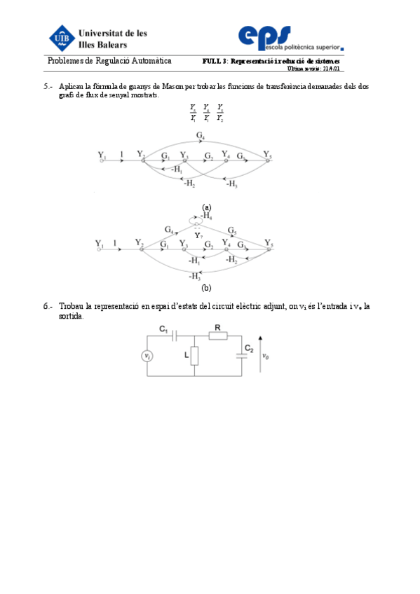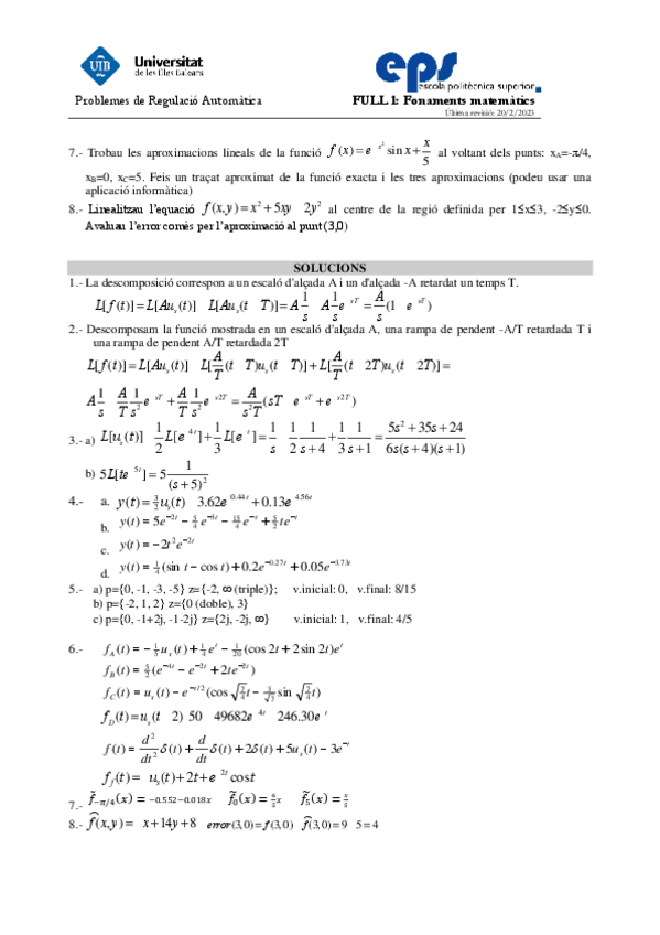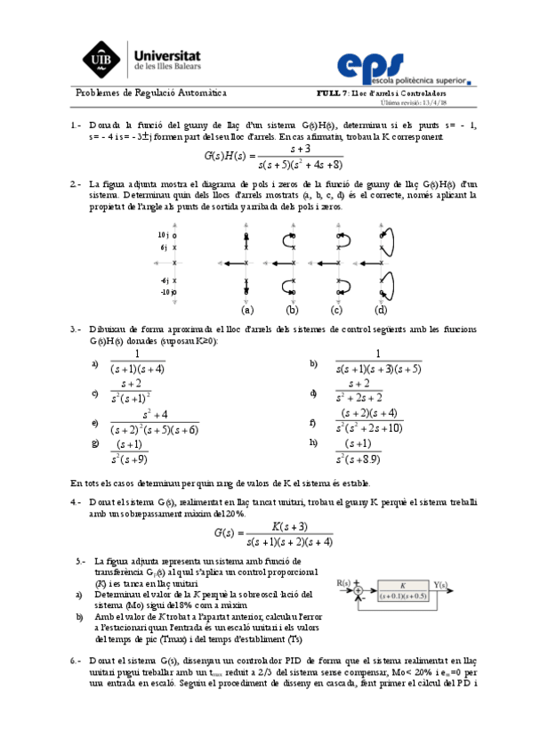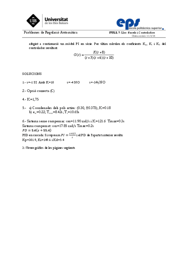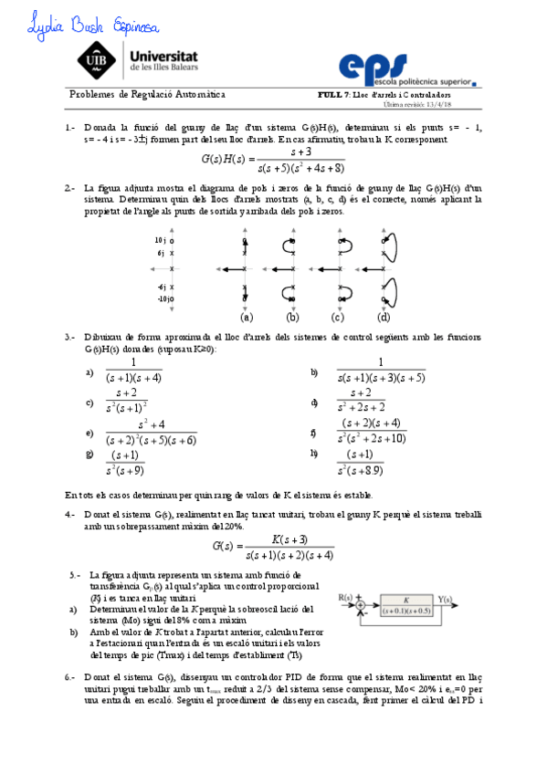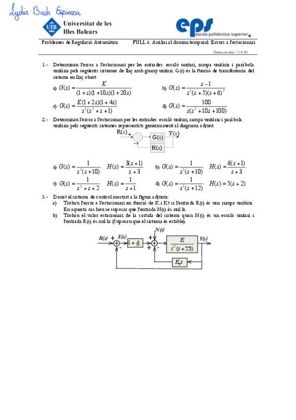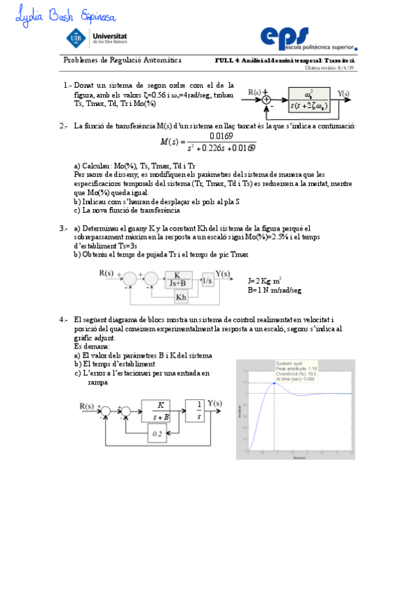 He publicado nuevos ejercicios de 2º Regulación Automática: Full3-Sistemes.pdf