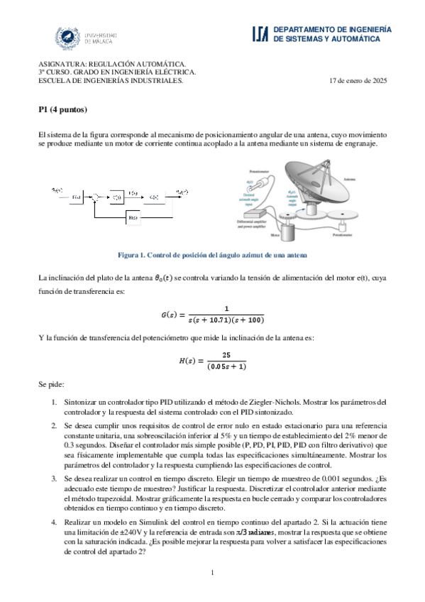 He publicado nuevos examenes de 3º Regulación Automática: ENERO2024-matlab.pdf