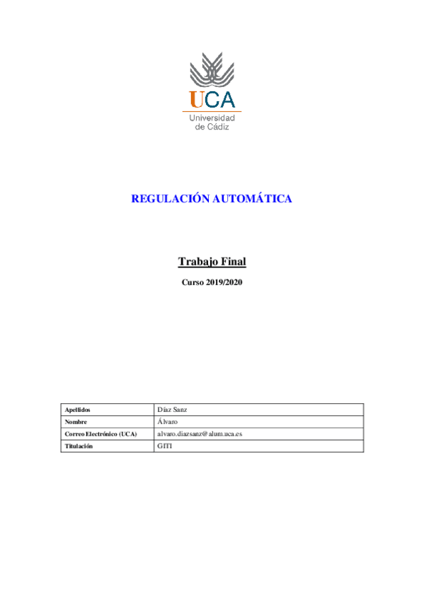 He publicado nuevos apuntes de 3º Regulación Automática: EJERCICIOENTREGABLEALVARODIAZSANZ.pdf