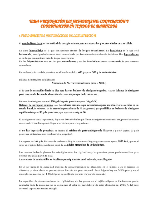 Apuntes completos Regulación del Metabolismo