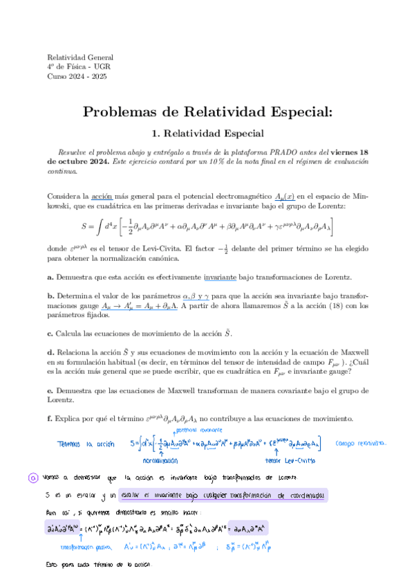 He publicado nuevos ejercicios de 4º Relatividad General: Entregas corregidas 2022-2023