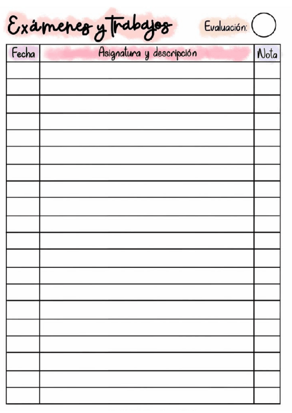 es una tabla para poder apuntar fecha de exámenes, asignatura, temas y su nota correspondiente :)