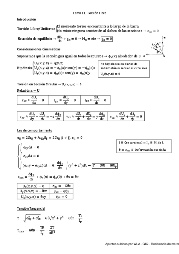 He publicado nuevos apuntes de 2º Resistencia de Materiales. Estructuras: Tema-11.-Torsion-Libre.pdf