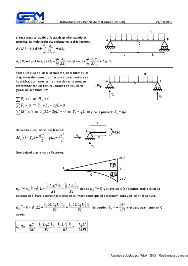 He publicado nuevos apuntes de 2º Resistencia de Materiales. Estructuras: 2016-Diciembre-WLA.pdf