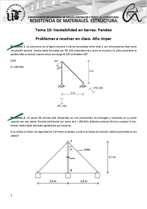 He publicado nuevos ejercicios de 2º Resistencia de Materiales. Estructuras: Tema-10-Pandeo.pdf