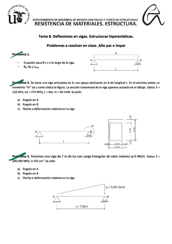 He publicado nuevos ejercicios de 2º Resistencia de Materiales. Estructuras: Tema-8-Deformaciones.pdf