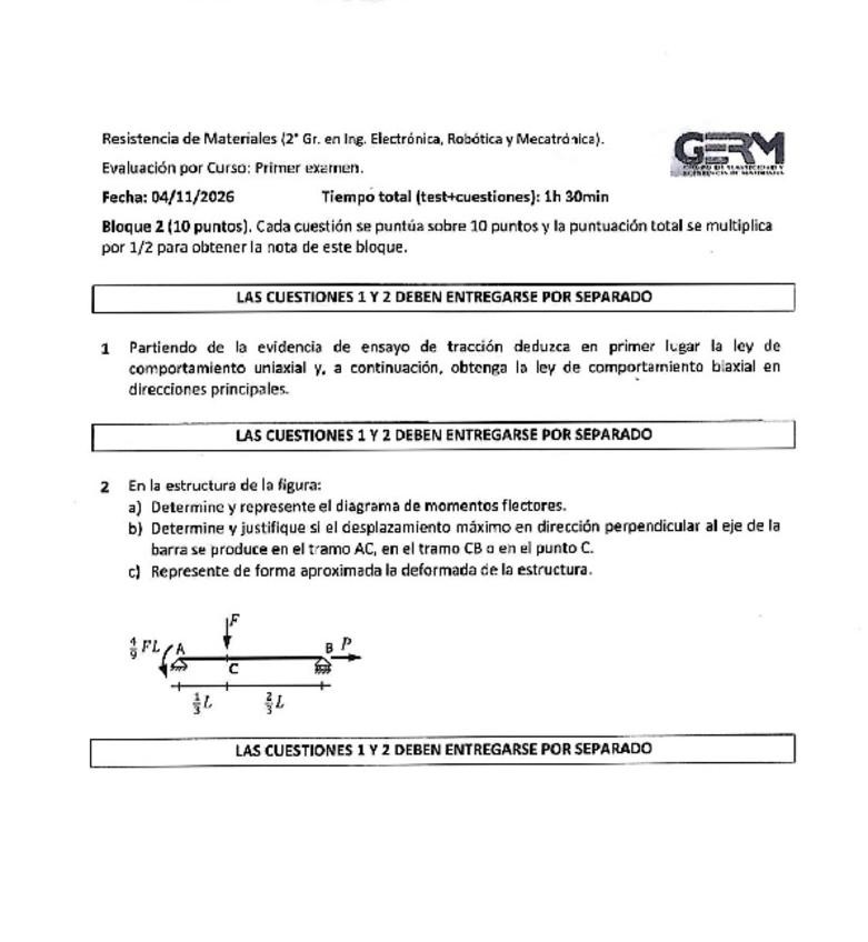 He publicado nuevos examenes de 2º Resistencia de Materiales: 1er-PARCIAL-2025-26.pdf