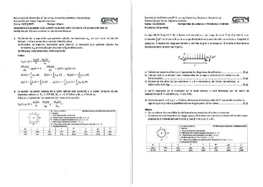 He publicado nuevos examenes de 2º Resistencia de Materiales: Segundo-parcial-RM-202526.pdf