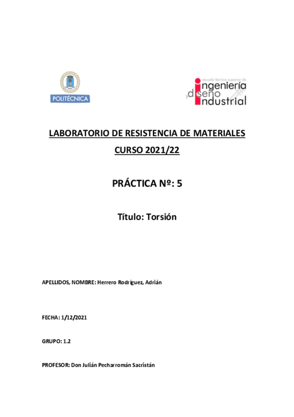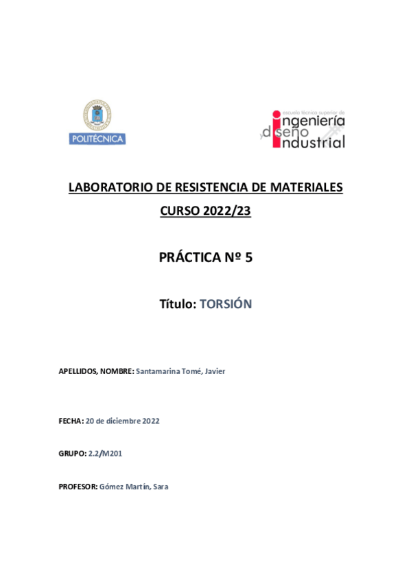 He publicado nuevos practicas de 2º Resistencia de Materiales: Informe-practica-5-Torsion-.pdf