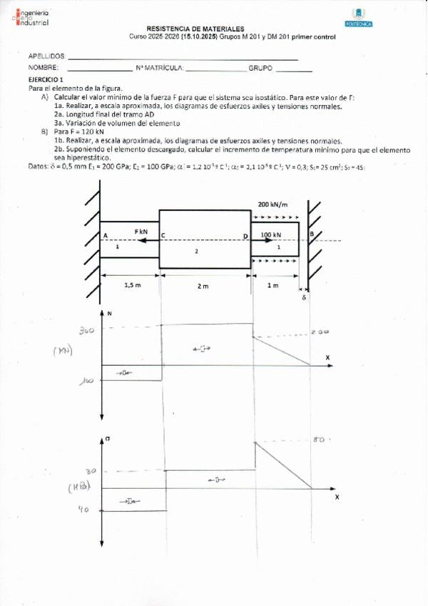 He publicado nuevos examenes de 2º Resistencia de Materiales: Controles-2025-26-con-Solucion-Completos.PDF
